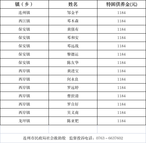 2026年3月新增特困對象名單