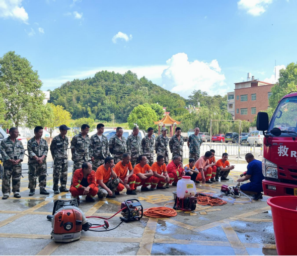 在實(shí)戰(zhàn)演練方面,九陂鎮(zhèn)在龍崗村成功模擬了一次山火撲滅演練。演練中,隊(duì)員們迅速響應(yīng)、協(xié)同作戰(zhàn),利用消防車輛和水槍等裝備,對模擬的山火進(jìn)行了有效的撲救。演練不僅檢驗(yàn)了隊(duì)伍受訓(xùn)成果,更在實(shí)戰(zhàn)中錘煉了隊(duì)伍的應(yīng)急反應(yīng)能力和協(xié)同作戰(zhàn)能力。
